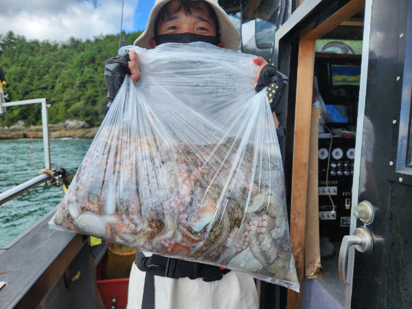 | 제목 : 돌문어 2kg 1.5kg 1.3kg 전원 kg에 장웡 35마리.33마리 동영상 조황 있어요 | ||