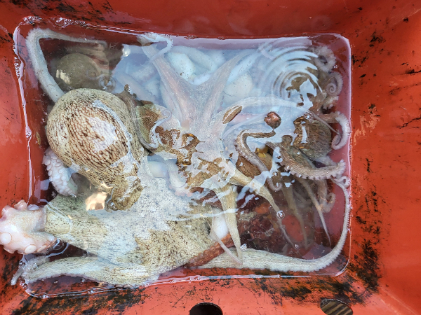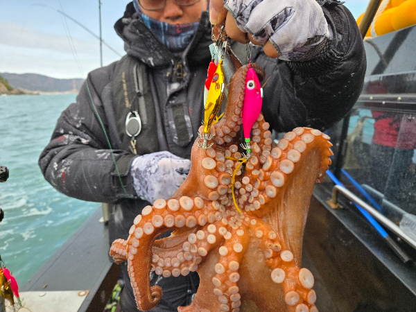 | 제목 : 2kg와 1.7kg.1kg 겨울 문어 와 장원 15마리 배 전체 130마리 | ||